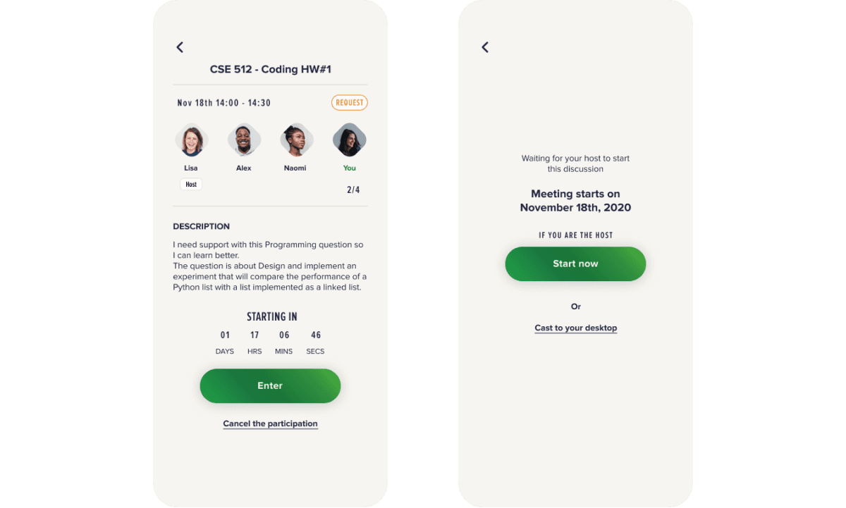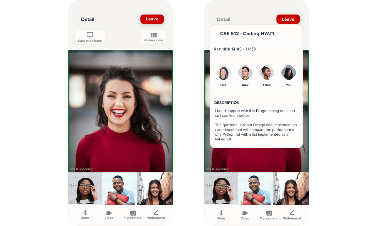 Our primary persona is college students who want more opportunities to collaborate with other students on the course assignments and have a dynamic relationship with their classmates which allows them to easily give and receive help.This option offers them a convenient way to create and form group discussions with their peers. Students can join and ask and answer questions from all their peers.