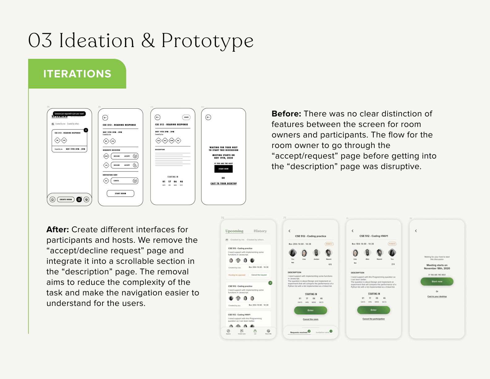 We set up the basic design goals based on users’ feedback. The general goal here was to design an engaging, efficient, and easy-to-use collaborative learning environment and social networking platform.