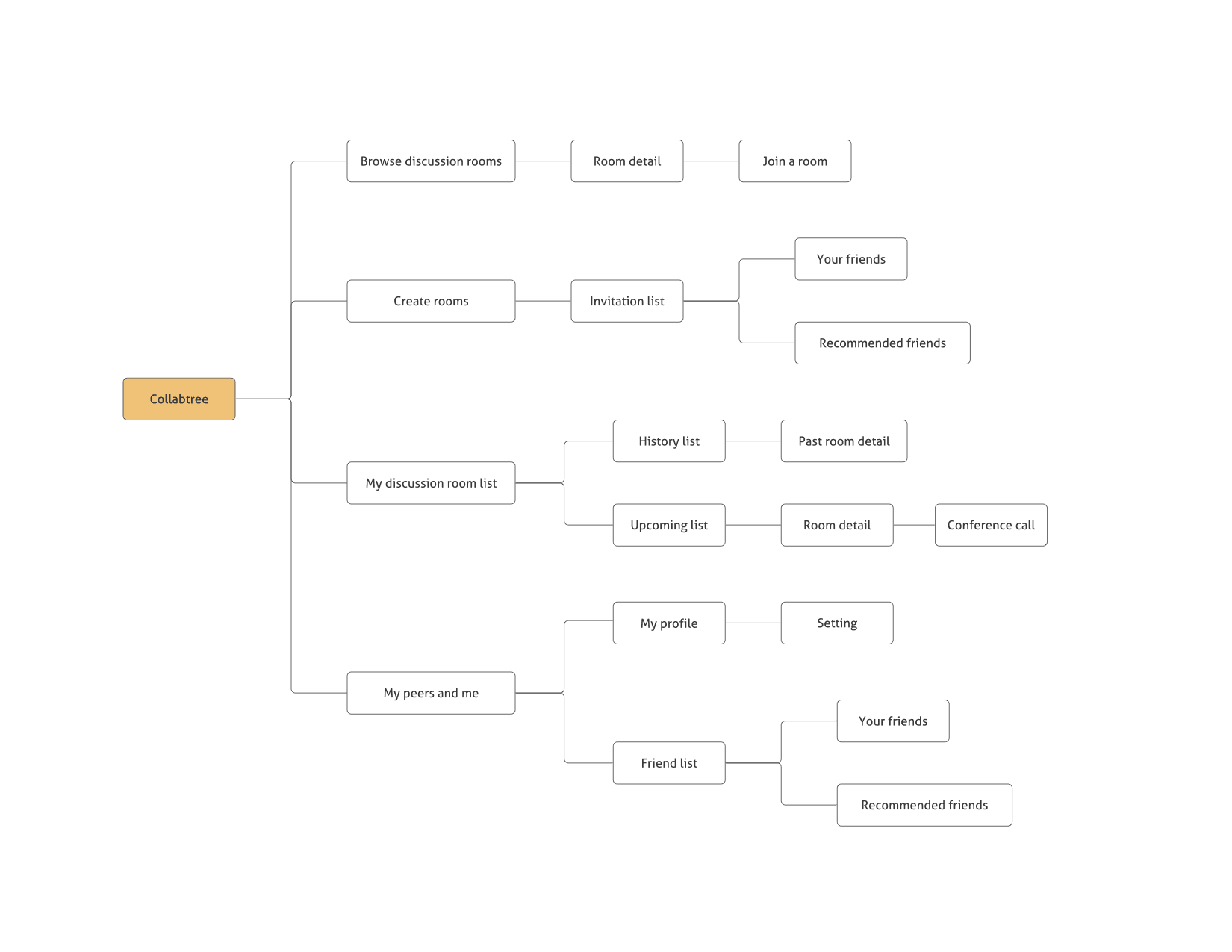 The design that we settled on after evaluating the advantages and disadvantages of each of the three designs is “Collabtree”. To restate the premise of our app, Collabtree, in a nutshell, is a platform that allows college students to form discussion groups and conduct collaborative study sessions remotely.