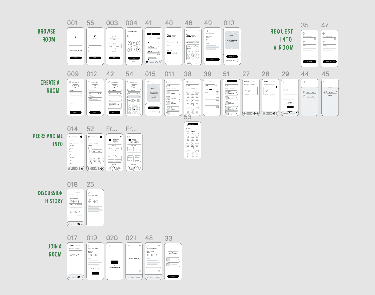 At this stage, we used wireframes to conduct the usability testing with our potential users and we go through what kind of information they would wish to have on this platform. We created most of the pages based on this information architecture.