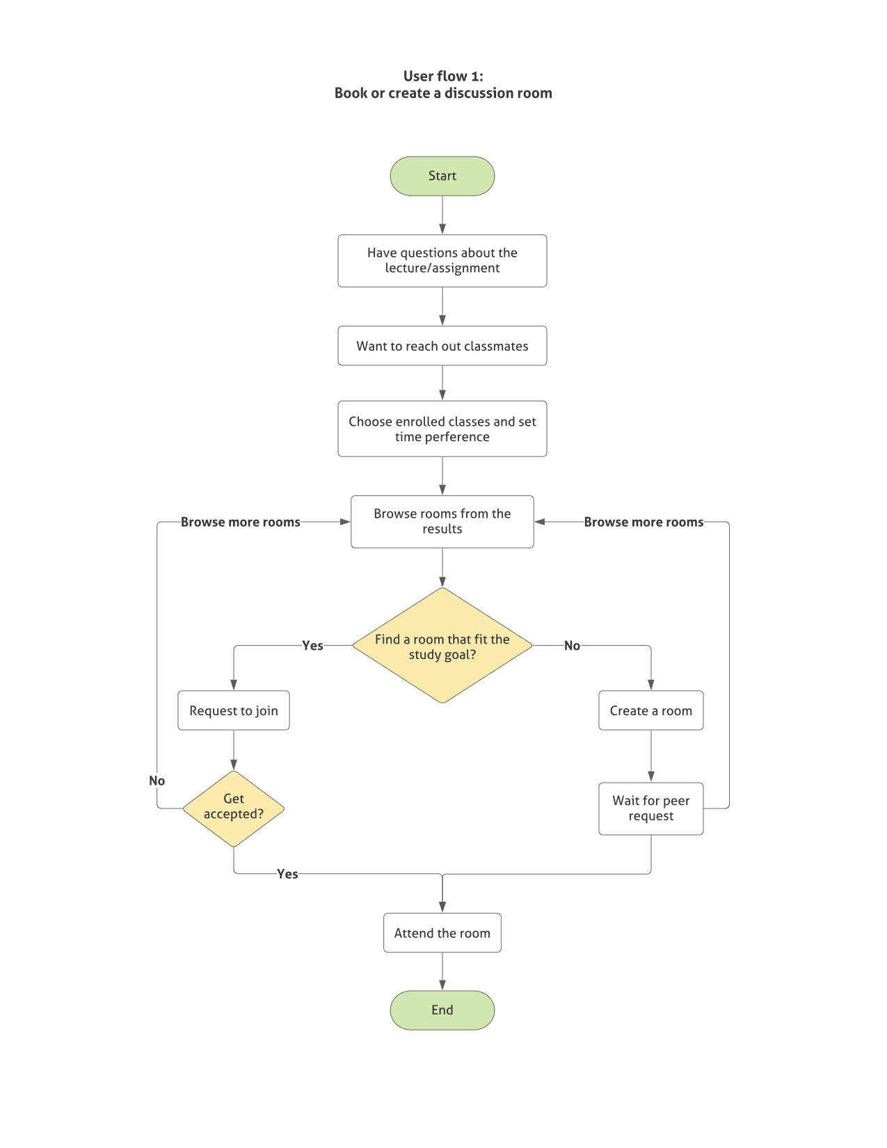 To further define users’ actions, we created user flows for different features to gain a better understanding of how users interact with each other.