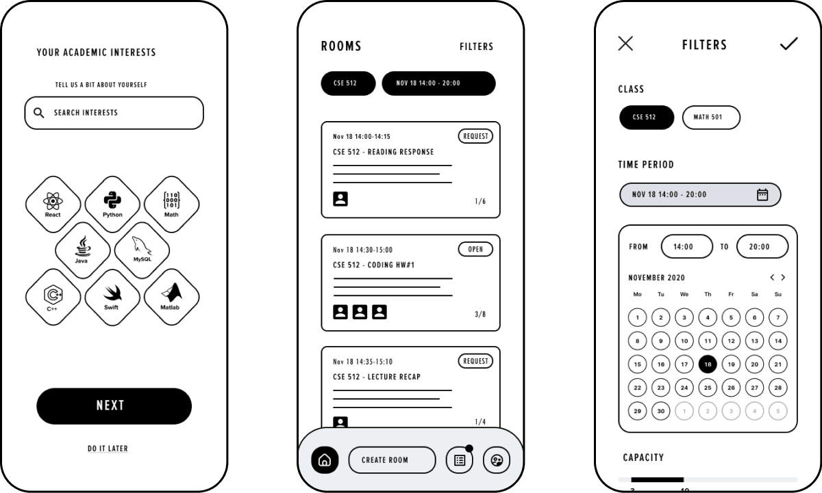 We came up with 3 designs that could be easily implemented with existing and available technologies, and which could quickly meet the needs of students and professors as soon as possible. The designs were also app-based, making them accessible to most virtually.