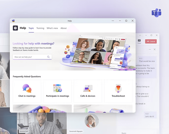 Redesign of the help experience in Meeting, focusing on providing in-meeting support, contextual help, and seamless access to resources during meetings.