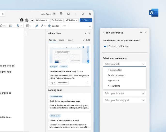 The What’s New feature in M365 will be redesigned to increase user engagement by promoting Copilot and related features in a more personalized way.