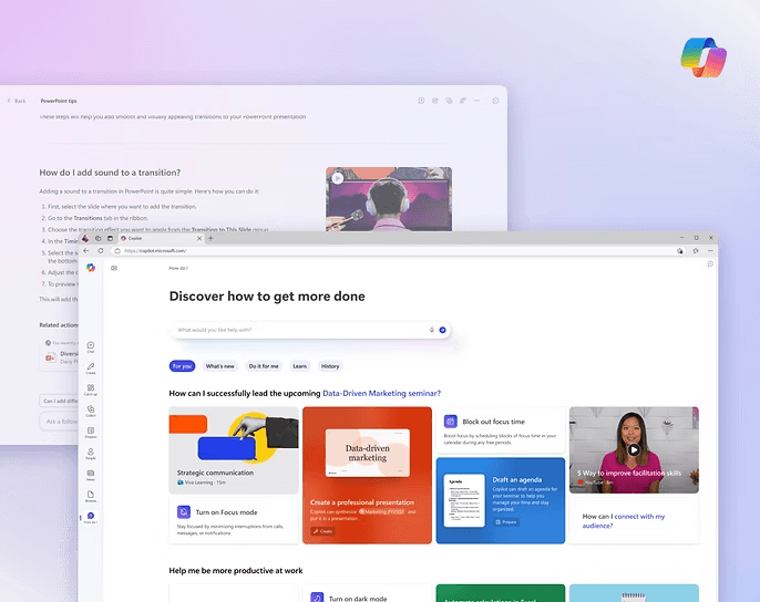 Designed UX/UI for Copilot apps (desktop and mobile), the Copilot Labs website, and a component library showcased at Microsoft Ignite 2024.
