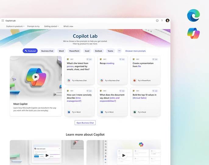 A collection of UX/UI projects focused on Copilot and learning experiences across Microsoft 365.