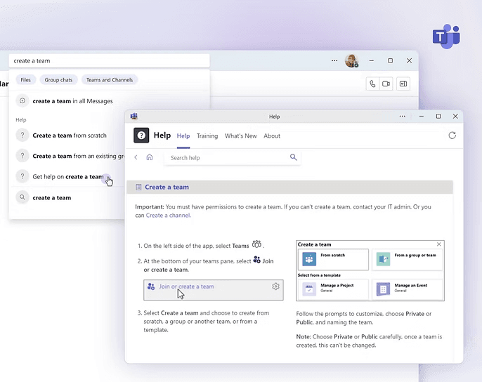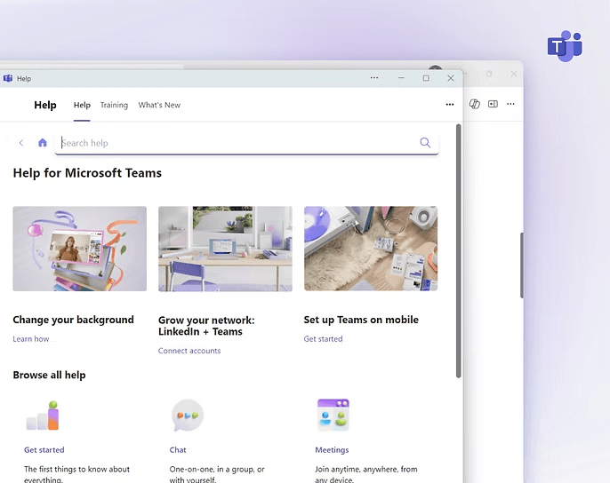 Redesign of the Teams Help Center, improving UX from landing page to L2 pages, optimizing CTA, integrating contextual content, and enhancing search in help.