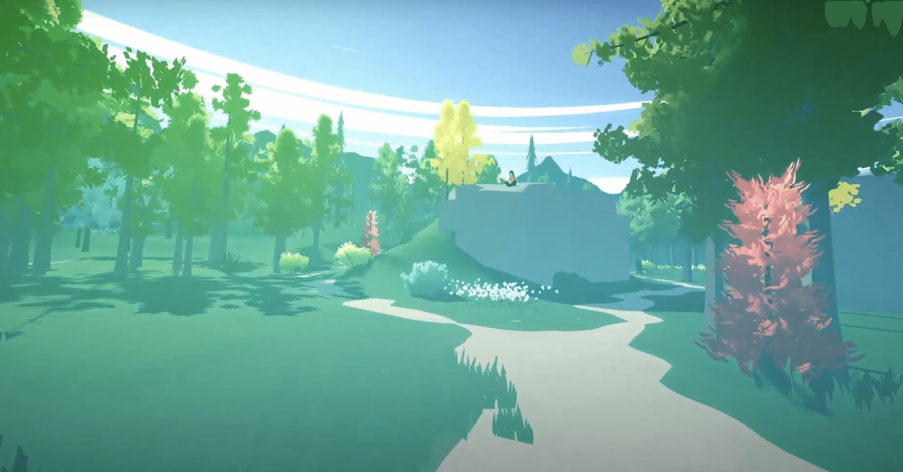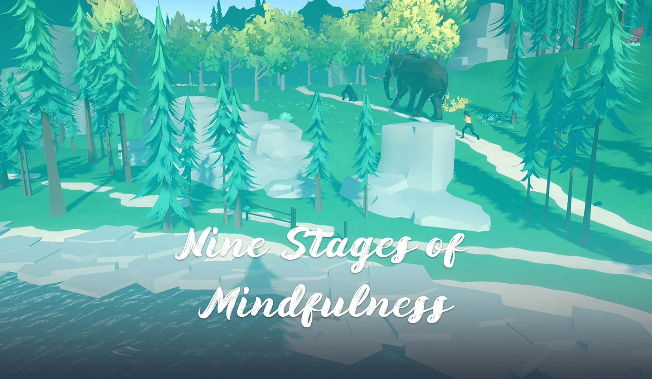 A calming environment in a natural setting that helps people relax and detach themselves from the environment they are currently in. Users will see an instructor and listen to a voiceover/music to help guide them through meditation practices. As part of this experience, users may be asked to perform easy tasks to help engage the mind but with a focus on relaxation.