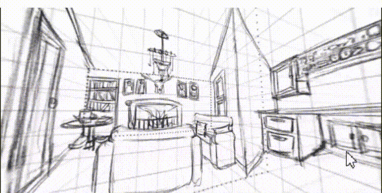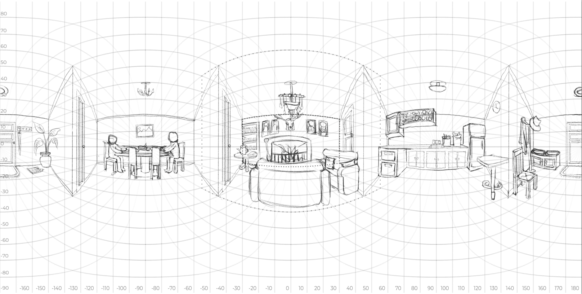 Then, I wanted to quickly sketch out the MVP experience in 3D, so I decide to sketch in 2D using 360 degree panorama grid, every line contributes to 10 degree of viewing angle.